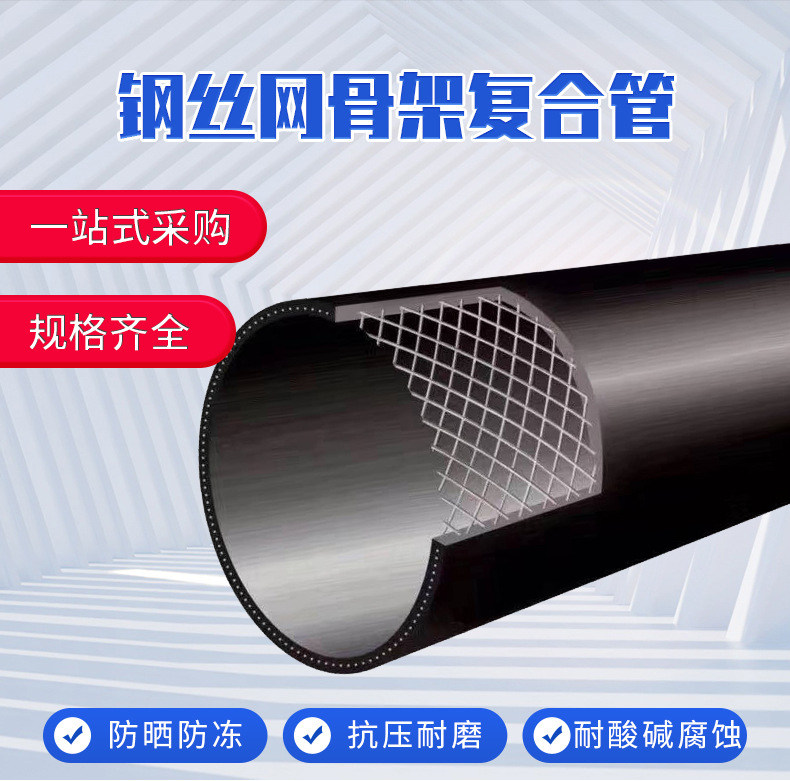 鋼絲網骨架通過專用熱熔膠層復合在塑料之中,管材內外表面具有相同防腐性能,耐磨,內壁光滑輸送阻力小,不結垢,不結蠟,節能效果明顯,用于埋地輸送及有腐蝕性環境條件下更加經濟方便。