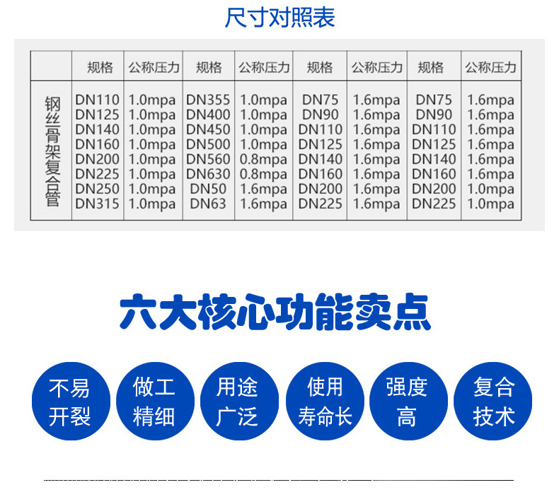 鋼絲網骨架聚乙烯復合管不但具有防腐、不結垢 、光滑低阻、保溫不結蠟、耐磨、質量輕等塑料管的共同特點,而且其獨特的結構還造就了如下特點: